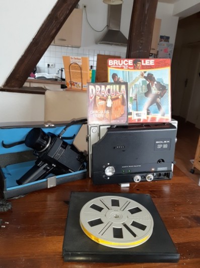 Filmkamera Porst Reflex Z8 384 mit Koffer. Bolex Sp 80 super 8 Film Projektor Zoomobjektiv. Zwei Filme...Bruce Lee und Dracula und ein leeres dabei....alles funktionsfähig. Leinwand gibt es gratis dazu....