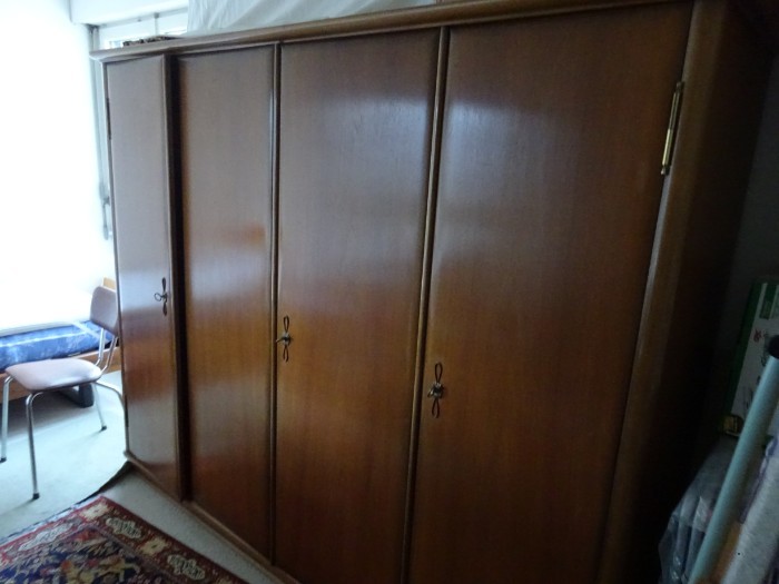 Wir verschenken unseren gut erhaltenen 4-türigen Schrank (Echtholz) und die dazu passende Kommode mit Spiegel.