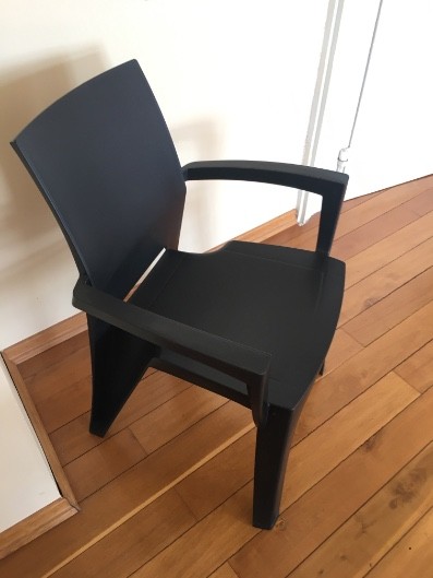 Die Stühle sind aus Hartkunstoff und Stappelbar.